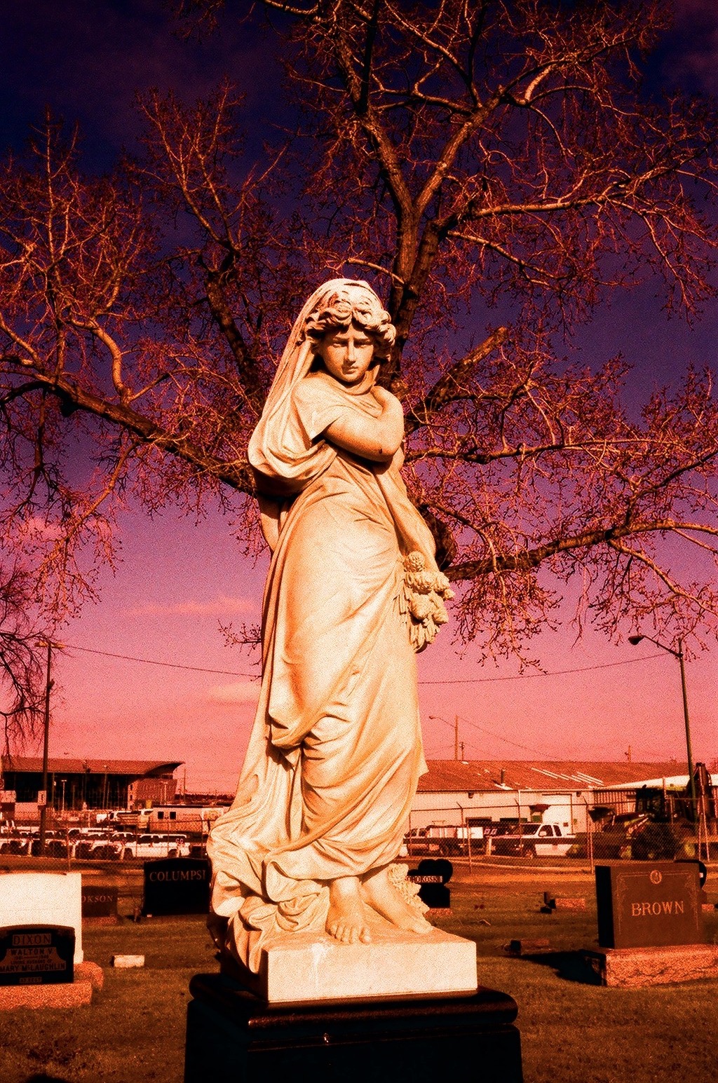 I love shooting these two statues in Burnsland Cemetery and have photographed them many times with different cameras and film. These were shot with my Canonet QL17 and a roll of Velvia 100. I love the pink and purple tones of these shots.